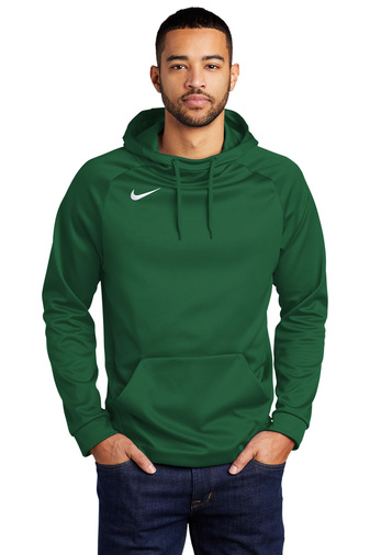 - Nike has elevated the classic hoodie by improving this year-round essential with incredibly warm Therma-FIT fabric which breathes and manages moisture. The design includes a three-panel hood front pouch pocket and open cuffs. The contrast heat transfer Swoosh design trademark is on the right chest. Made of 7.4-ounce 100% polyester Therma-FIT fabric.